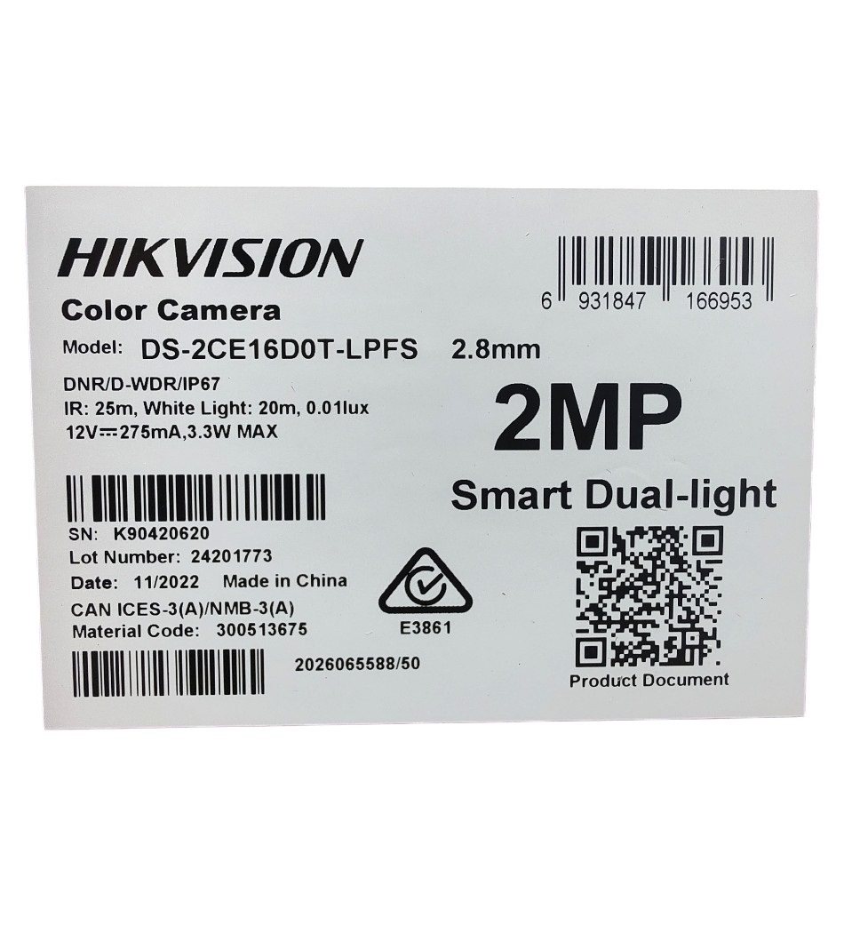 HIKVISION CAMERA HD BULLET MINI DS-2CE16D0T-LPFS 2MP 2.8MM